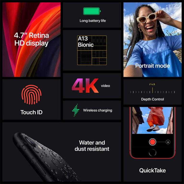 با iPhone SE 2020، قدرت و کارایی را در دستان خود تجربه کنید و لحظات خاص زندگیتان را با کیفیت بالا ثبت کنید!